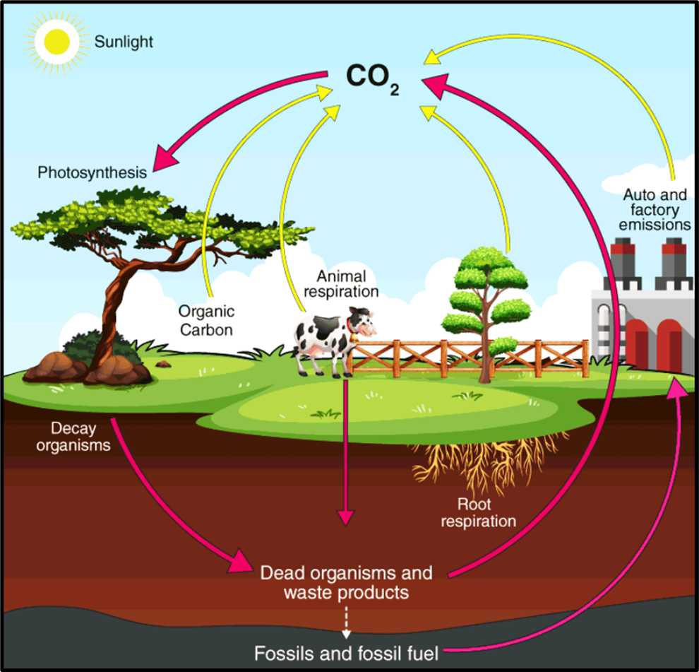 - Thus, carbon returns to the atmosphere.