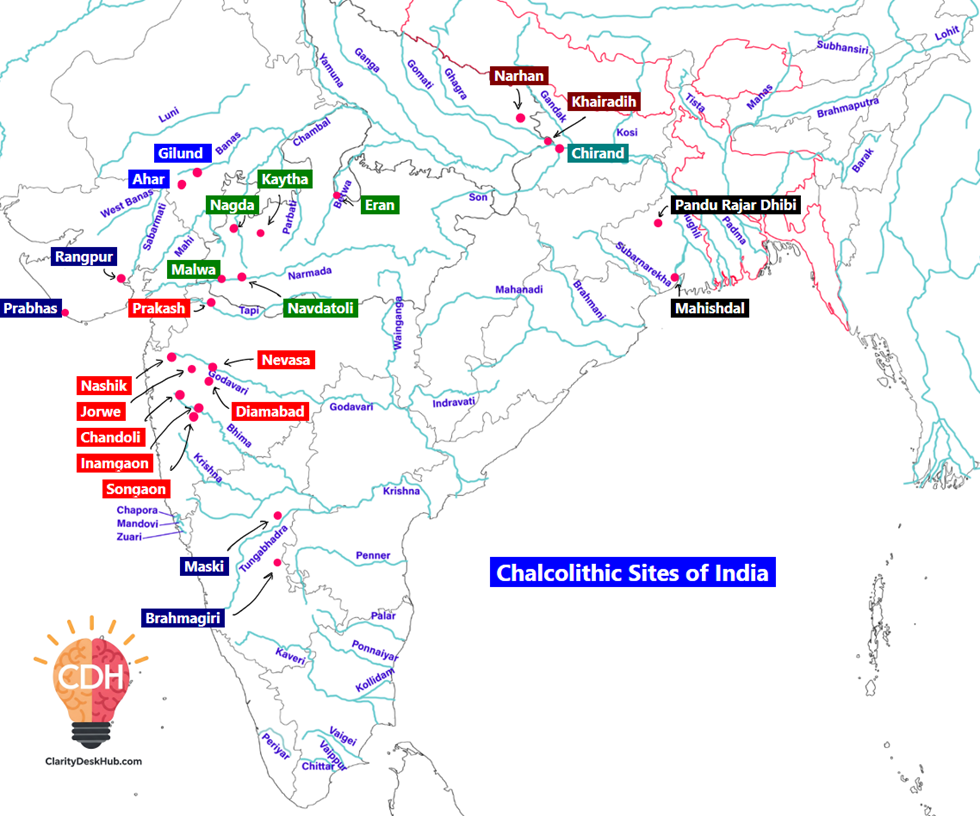 Chalcolithic cultures are usually associated with river valleys and hilly terrains — areas where both water and stones were easily available.