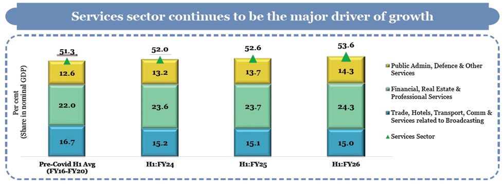 Despite this strong performance, challenges persist in the form of skill gaps, regulatory bottlenecks, infrastructure constraints, and global competition. Going forward, sustained growth will depend on innovation, skill development, policy reforms, and enhanced coordination across stakeholders to ensure that the services sector remains resilient, competitive, and inclusive.