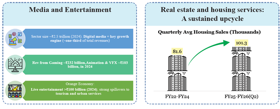Meanwhile, sectors like real estate and media are benefiting from formalisation, digitalisation, and rising incomes. Emerging frontiers such as space and ocean services signal a shift towards high-technology, export-oriented services.