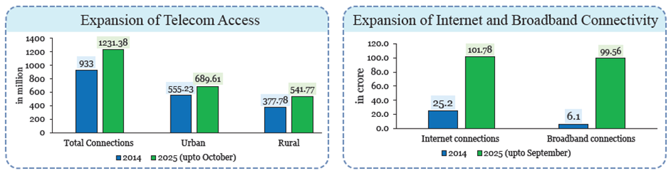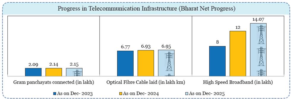 - BharatNet connects 2.14 lakh Gram Panchayats.