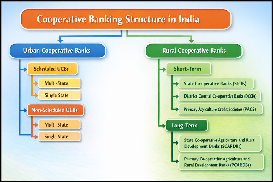 In India, cooperative banks are broadly classified into two categories based on their area of operation: