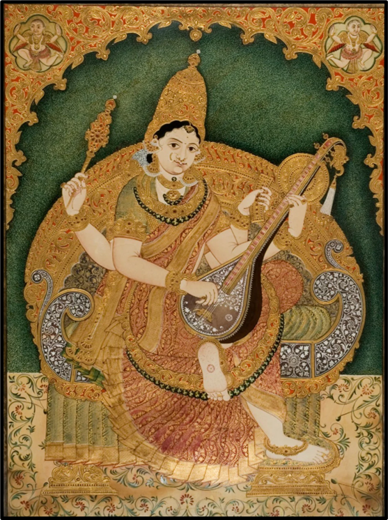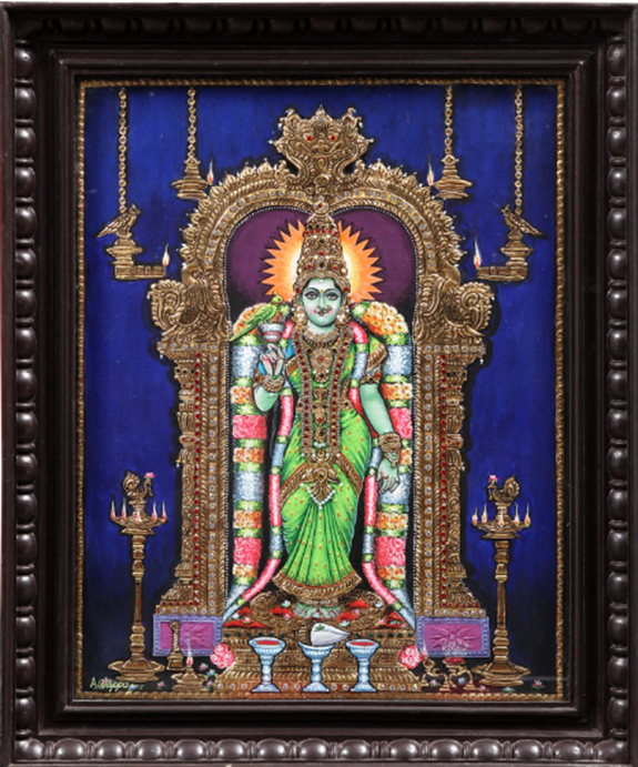 Tanjore painting = temple icon in paint + heavy gold + wooden panel