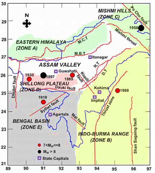 - A major fault zone in Northeast India.