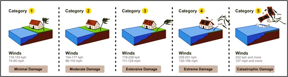 👉 To measure and compare their intensity, meteorologists classify them into categories based on wind speed and associated impact.