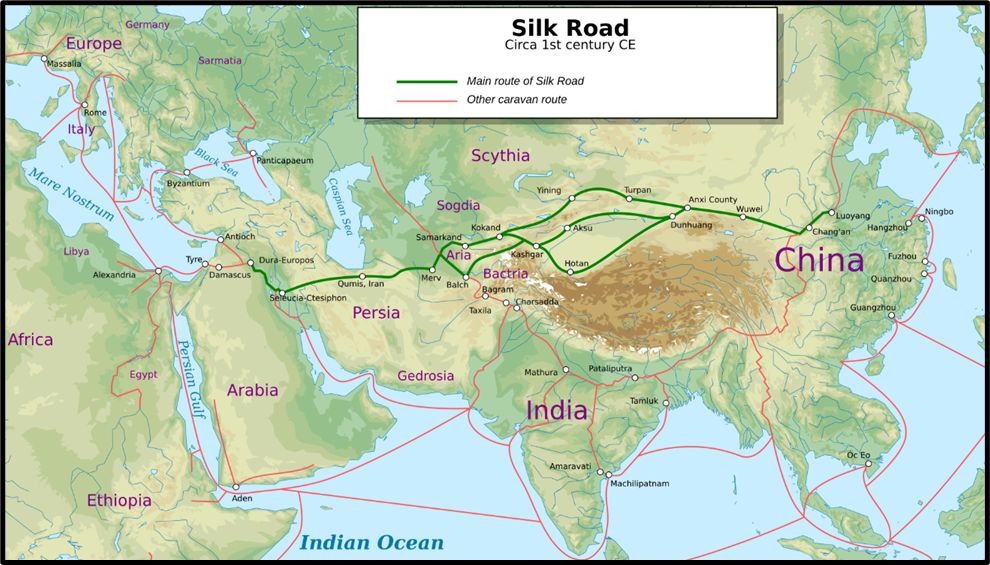 The following figure shows an illustration of Silk Road in the 1st century: