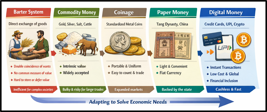 Understanding the Forms Money Can TakeAfter understanding what money is, how it evolved, and what functions it performs, the next logical step is to examine the different types of money.This classification helps us understand why some forms of money derive value from metal, some from law, and some purely from trust. Broad Classification of Money…