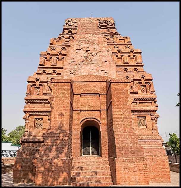 - Features → Elliptical foundation, Burnt brick floor, Garbhagriha, Pradakshinapatha