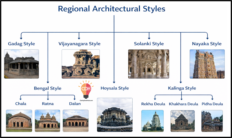 Hindu temple architecture shows → Regional diversity, Multiple construction methods, Adaptation to different deities, Variation across time