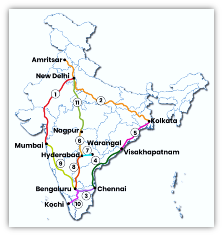 โ Indiaโs urban growth has often been haphazard. These new corridors aim to promote planned, sustainable urban development alongside industrial expansion. - Multi-Modal Connectivity