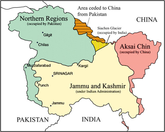 - India claims Aksai Chin + Shaksgam Valley (illegally gifted to China by Pakistan in 1963).