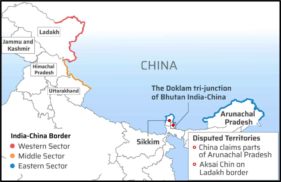 China | 3,488 km | Ladakh, HP, Uttarakhand, Sikkim, Arunachal Pradesh |