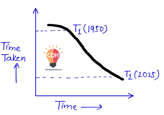 📊 Observed the graph: as transport technology improves, time taken (T₁) reduces to T₂, even if the distance remains the same. That’s conquering space through speed.