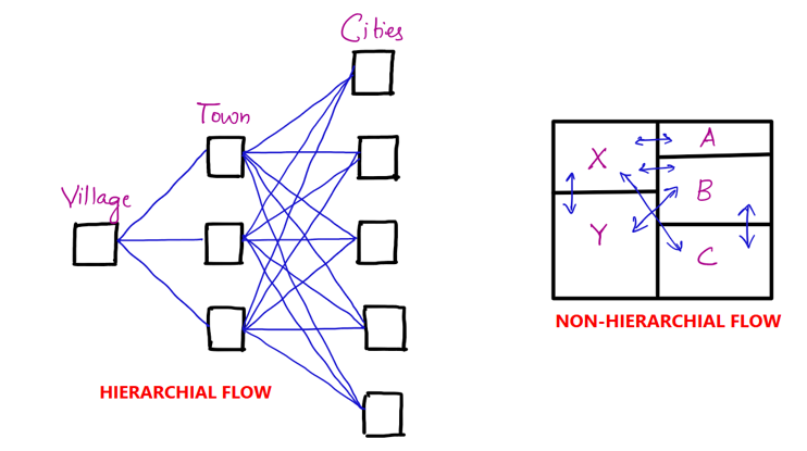 - Here, human planning is key, unlike the natural terrain-based flow.
