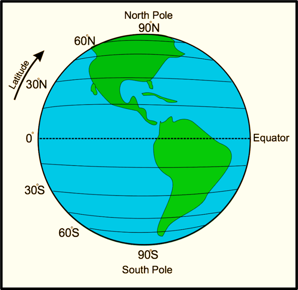 - Latitudes – Horizontal lines running parallel to the equator.
