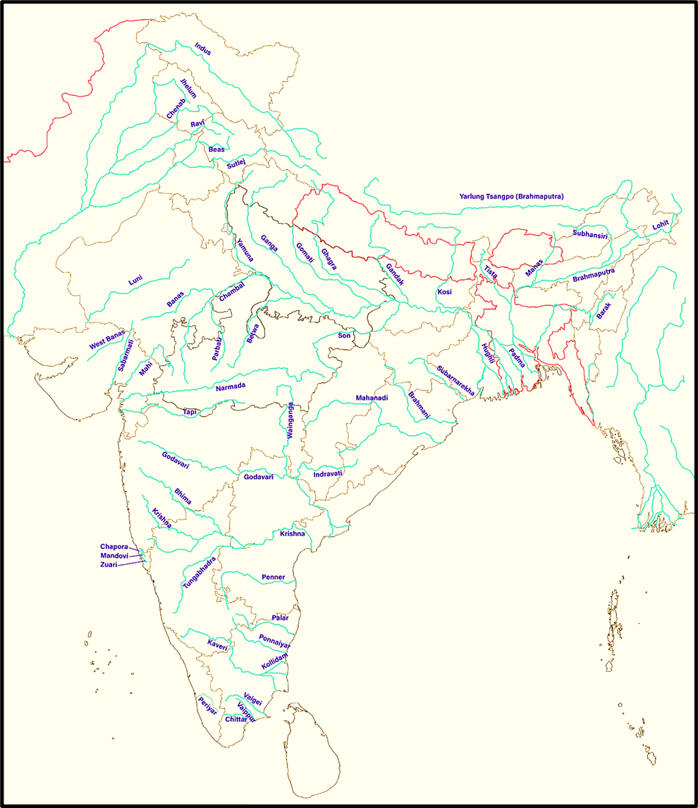 | Sl. No. | River | Total Length (km) | Length in India (if different) |