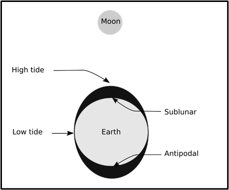 In contrast, areas perpendicular to these bulges experience low tides, completing the two-high, two-low tide cycle every day.