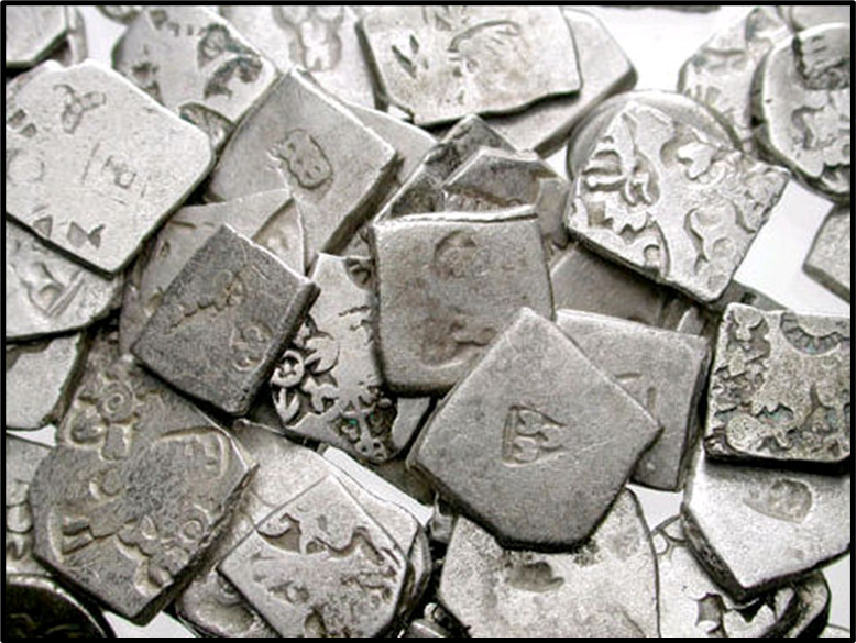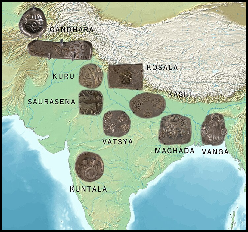These are the earliest coins of India, emerging around the 6th century BCE, during the age of the Mahajanapadas.