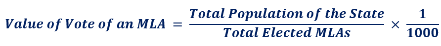 Each elected MLA of a State has a vote value based on the population of that State and the number of elected MLAs in that State.