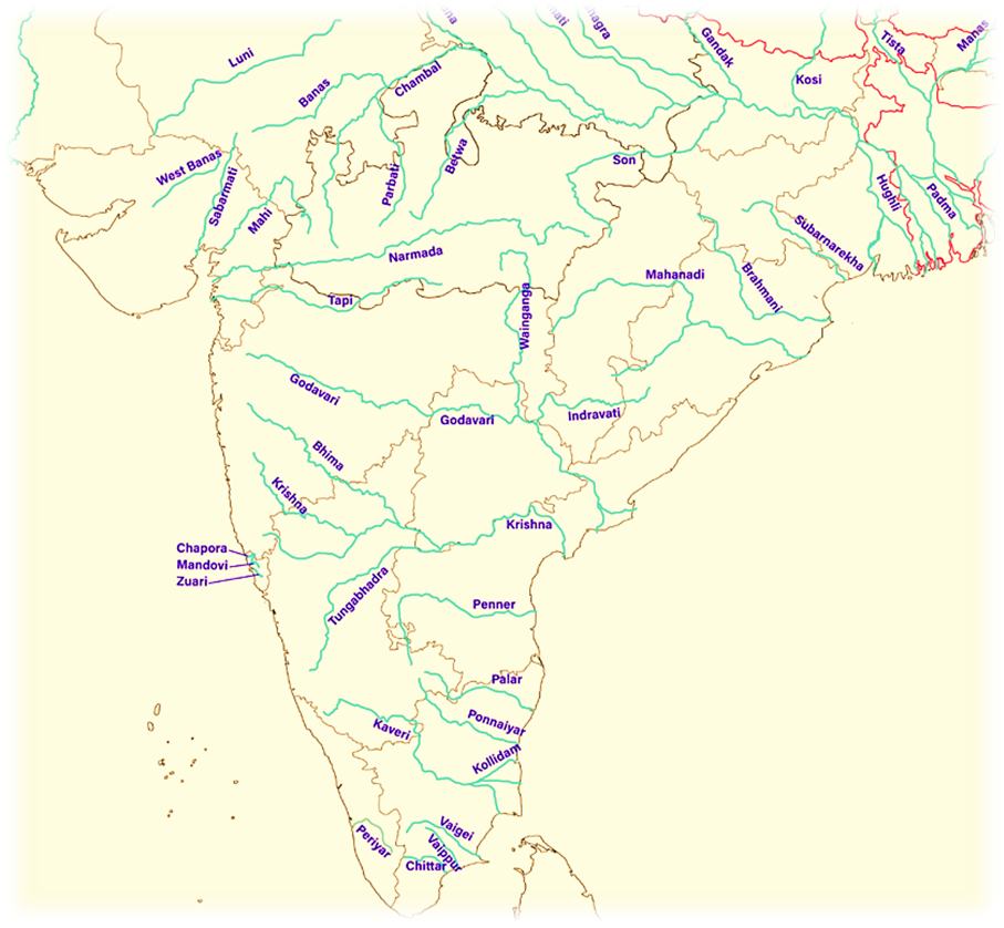 - Examples: Narmada, Tapti, Mahi, and many smaller rivers.
