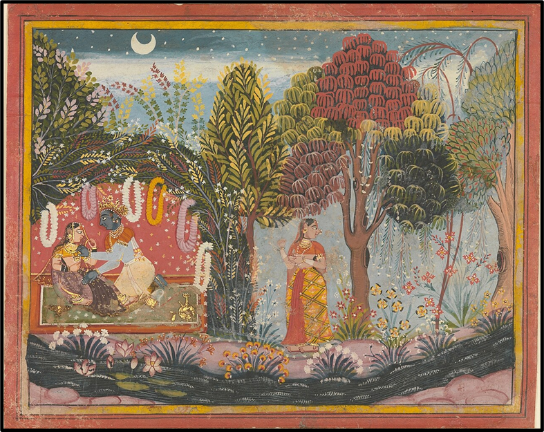 The Radha–Krishna relationship is both erotic and metaphysical.