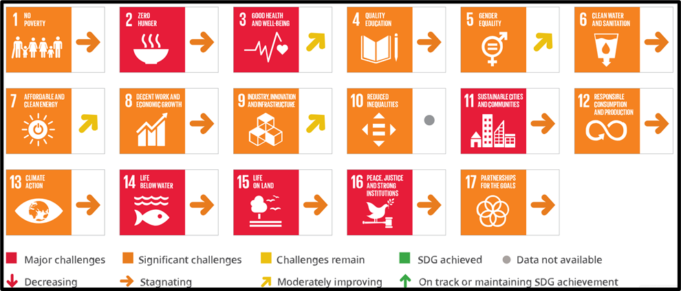 - This stagnation is driven by conflicts, structural vulnerabilities, and limited fiscal space, which continue to hinder effective SDG implementation.