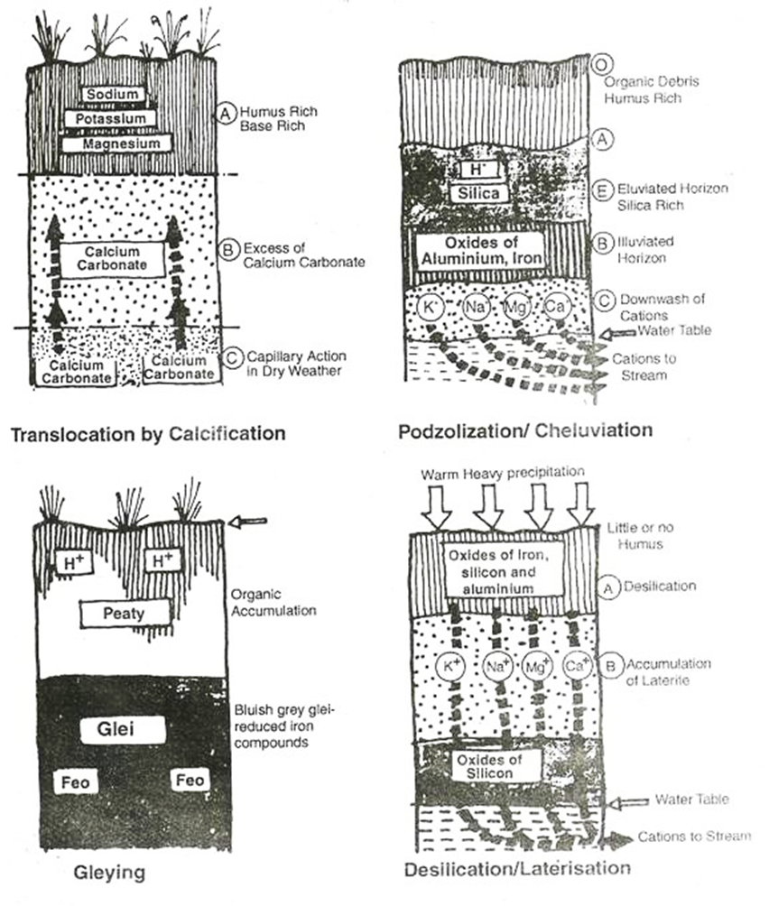 Soil is never static; it continuously moves, rearranges, and redistributes its components. This movement of soil materials, mostly in a downward direction, is called translocation. It occurs through the following processes: