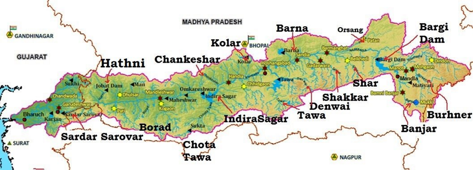 The Narmada’s rift valley course and narrow channel make it ideal for building hydroelectric dams.